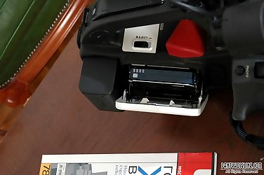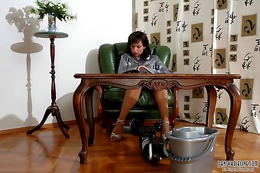 Hot cleaner cant tide up while looking at raunchy chick in nylon pantyhose